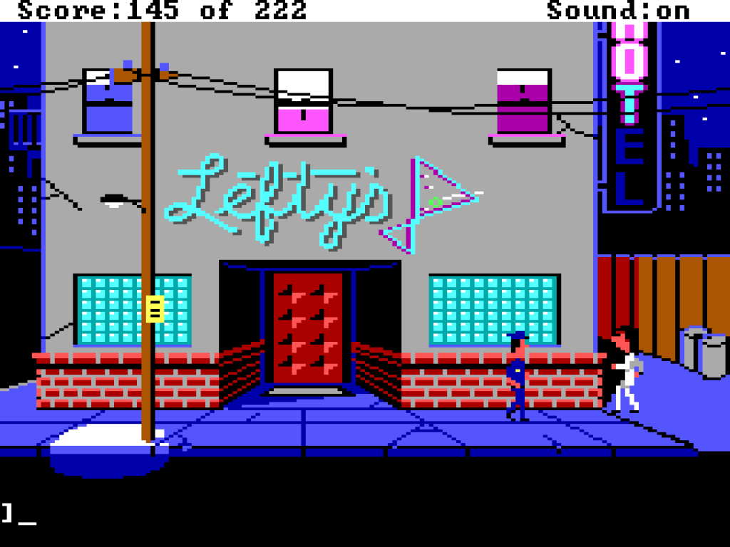 It was developed by Sierra On-Line and published in 1987. It started off on PC DOS and Apple IIe then was ported to other platforms. Sierra was known for pioneering graphic adventure games such as King’s Quest, Space Quest and Police Quest. I had no idea that this raunchy game came from the same place as the legendary King’s Quest IV – an icon of graphic adventure gaming.
